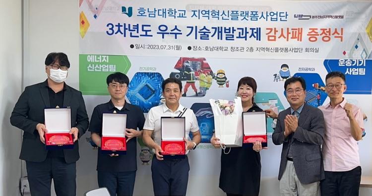 °¨»çÆÐ¸¦ ¹ÞÀº ±³¼ö´Â Àü±â°øÇаú À±±Ù¿µ ±³¼ö, Á¤º¸Åë½Å°øÇаú À±»ó¿Á ±³¼ö, »ê¾÷µðÀÚÀÎÇаú ¿ÀÅ¿ø ±³¼ö, ¹Ì·¡ÀÚµ¿Â÷°øÇкΠ¹Úâ½Å ±³¼ö, ¹Ì·¡ÀÚµ¿Â÷°øÇкΠ±Ç±âÇÑ ±³¼ö, ÀüÀÚ°øÇаú À±Å¼ø ±³¼ö µî ÃÑ 6¸íÀ¸·Î °¢ ±â¼ú°³¹ß°úÁ¦¿¡¼ ±â¼úÀÌÀü·á, ƯÇãÃâ¿ø µî ¿ì¼öÇÑ °á°ú¸¦ º¸¿©ÁÖ¾ú´Ù.