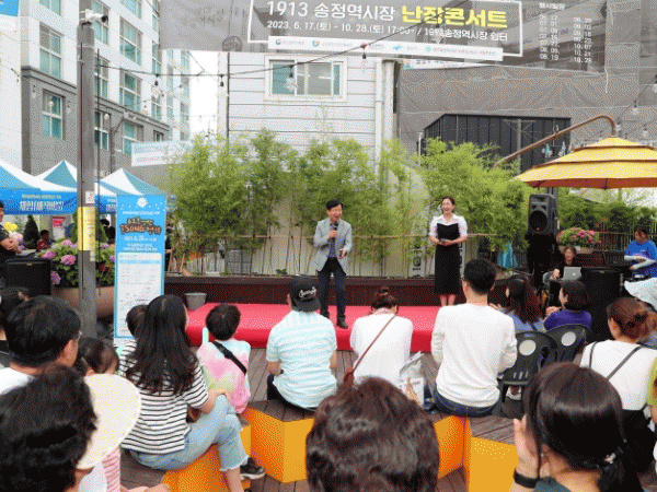 ¸ÅÁÖ Åä¿äÀÏ 1913 ¼ÛÁ¤¿ª½ÃÀå ½°ÅÍ¿¡ ¸¶·ÃµÈ ¹«´ë¿¡¼´Â °¡¿ä, ÆËÆä¶ó °ø¿¬ µî ³ÀåÄܼƮ ¹× °æÇ°ÁõÁ¤ À̺¥Æ® Çà»ç¸¦ ÁøÇàÇÑ´Ù.