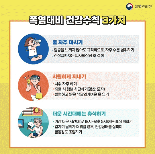 ±èº¹´ö ±¤¾ç½Ã º¸°Ç¼ÒÀåÀº ¡°¿Â¿ÁúȯÀº °Ç° ¼öÄ¢À» Àß ÁöŰ´Â °Í¸¸À¸·Îµµ ¿¹¹æÀÌ °¡´ÉÇÑ ¸¸Å ¹«´õÀ§ ½Ã Àå½Ã°£ÀÇ ½Ç¿Ü Ȱµ¿À» ÀÚÁ¦Çϰí ÃæºÐÇÑ ÈÞ½ÄÀ» ÃëÇÏ´Â µî ÁÖÀǰ¡ ÇÊ¿äÇÏ´Ù¡±°í °Åµì °Á¶ÇÏ¸ç ¡°°Ç°ÇÑ ¿©¸§³ª±â¸¦ À§ÇØ ´õ¿î ½Ã°£´ë ÈÞ½ÄÇϱâ, ¹° ÀÚÁÖ ¸¶½Ã±â µî °Ç° ¼öÄ¢À» ÁؼöÇØÁÙ °Í¡±À» ´çºÎÇß´Ù.