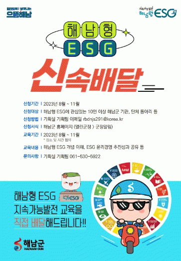 À̹ø ã¾Æ°¡´Â ±³À°À» ÅëÇØ¼ ÇØ³²Çü ESG¿¡ ´ëÇÑ Àνݳ¼±°ú ±º¹Î°ú ÇÔ²² ¸¸µå´Â ÇØ³²Çü ESGºñÀüÀÌ ½ÇÇöµÉ °ÍÀ¸·Î ±â´ëµÈ´Ù.