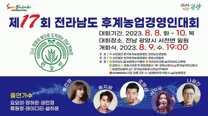 Àü¶ó³²µµ, ±¤¾ç½Ã°¡ ÈÄ¿øÇϰí (»ç)Çѱ¹Èİè³ó¾÷°æ¿µÀÎ Àü¶ó³²µµ¿¬ÇÕȸ°¡ ÁÖÃÖÇϸç (»ç)Çѱ¹Èİè³ó¾÷°æ¿µÀÎ ±¤¾ç½Ã¿¬ÇÕȸ°¡ ÁÖ°üÇÏ´Â À̹ø ´ëȸ´Â ÇÑ³ó¿¬ È¸¿øÀÇ ³ó¾÷ Á¤º¸ ±³·ù¿Í ´Üü ÈÇÕÀ» À§ÇØ °Ý³âÁ¦·Î ÃßÁøÇÏ´Â Çà»ç·Î Àü¶ó³²µµ¸¦ ´ëÇ¥ÇÏ´Â Çà»ç·Î ¼Õ²ÅÈù´Ù.