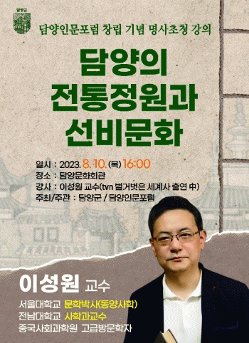 À̹ø °¿¬¿¡´Â tvN ¡®¹ú°Å¹þÀº ¼¼°è»ç¡¯ ¿Ü ´Ù¼ö °ÀǸ¦ ¸Ã°í ÀÖ´Â À̼º¿ø Àü³²´ëÇб³ Àι®´ëÇÐÀå(»çÇаú ±³¼ö)À» ÃʺùÇØ ¡®´ã¾çÀÇ ÀüÅë¹®È¿Í ¼±ºñÁ¤½Å¡¯À» ÁÖÁ¦·Î ÁøÇàÇÑ´Ù.