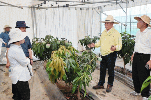 ±è»ê ±º¼ö´Â ¡°¾Æ¿´ë°ú¼ö¿¡ ´ëÇÑ Àû±ØÀûÀÎ À°¼ºÀ¸·Î ±âÈĺ¯È¿¡ ´ëÀÀÇÏ´Â ½Å¼Òµæ ÀÛ¹°À» È®´ëÇØ ³ª°¡°Ú´Ù¡±°í °Á¶Çß´Ù. ¶ÇÇÑ ¹æ¹® Áß¿¡ ³ó¾÷ÀεéÀÇ ¾Ö·Î»çÇ×À» ûÃëÇßÀ¸¸ç, ƯÈ÷ »ý»ê½Ã¼³ Áö¿ø»Ó¸¸ ¾Æ´Ï¶ó ¾Æ¿´ë ³óÀå¿¡¼ »ý»êµÇ´Â Á¦Ç°ÀÇ ½ÃÀå °³Ã´°ú ¼öÀͼº È®º¸¸¦ À§ÇÑ Àû±ØÀûÀÎ Áö¿øÀ» ÅëÇØ ³ó¹ÎµéÀÇ ºÎ´ãÀ» ÁÙÀÌ°í ³ó¾÷ °æ¿µÀÇ ¾ÈÁ¤¼ºÀ» ³ôÀÌ´Â µ¥¿¡ ÁÖ·ÂÇÒ ¿¹Á¤À̶ó°í ¹àÇû´Ù.