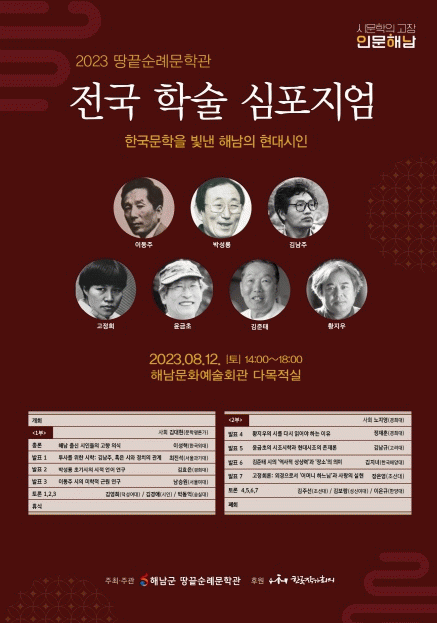 ½ÉÈ£ À̵¿ÁÖ, ³²¿ì ¹Ú¼º·æ, ±è³²ÁÖ, °íÁ¤Èñ, À±±ÝÃÊ, ±èÁØÅÂ, ȲÁö¿ì ½ÃÀÎ µî Çö´ë ½ÃÀεéÀ» ÁÖÁ¦·Î, ÇØ³²ÀÇ ¹®ÇÐÀû Á¤Ã¼¼º°ú ±× È帧À» ÃÑüÀûÀ¸·Î °íÂûÇÏ´Â ¿¬±¸¹ßÇ¥°¡ À̾îÁø´Ù.