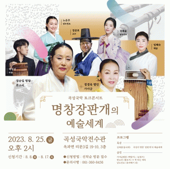 À̹ø ÅäÅ©ÄܼƮ´Â °î¼ºÀÇ ´ëÇ¥ÀûÀÎ ±¹¾Ç ¸íÀÎÀÎ ÀåÆÇ°³(íå÷÷Ë¿) ¼±»ýÀ» ÁÖÁ¦·Î Ư°°ú °ø¿¬À¸·Î ÀÌ·ïÁ³´Ù. ÀåÆÇ°³ ¼±»ýÀÇ »ý¾Ö¿Í ¿¹¼ú¼¼°è¸¦ ±º¹Îµé¿¡°Ô ³Î¸® ¾Ë¸®°í, ±×ÀÇ ÈļÕÀÎ ±¹°¡¹«Çü¹®ÈÀç Á¦5È£ ÆÇ¼Ò¸® 'Èﺸ°¡' º¸À¯ÀÚÀÎ Á¤¼øÀÓ ¸íâÀÇ °ø¿¬µµ ÁغñµÆ´Ù.
