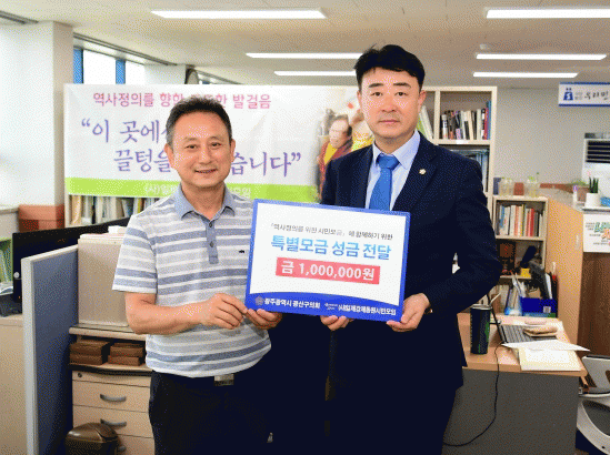 ±¤»ê±¸ÀÇȸ´Â 8ÀÏ »ç´Ü¹ýÀÎ ÀÏÁ¦°Á¦µ¿¿ø½Ã¹Î¸ðÀÓ¿¡ ¹æ¹®ÇØ ¡®¿ª»çÁ¤ÀǸ¦ À§ÇÑ ½Ã¹Î¸ð±Ý¡¯À¸·Î ¸ðÀÎ ¼º±Ý 1¹é¸¸ ¿øÀ» ±âŹÇß´Ù.