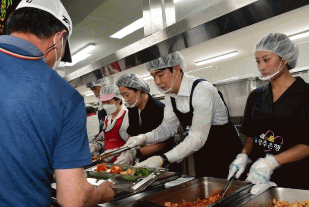 ¹«´õÀ§°¡ ¿¬ÀÏ À̾îÁö´Â °¡¿îµ¥ ±¤ÁÖ½ÃÀÇȸ¿Í ±¤ÁÖÀºÇàÀº ³ëÀΰǰŸ¿îÀ» ãÀº ¾î¸£½Åµé¿¡°Ô »ï°èÅÁÀ» ´ëÁ¢Çß´Ù. »ï°èÅÁ ¹è½Ä ÈÄ¿¡´Â °úÀÏ, À½·á¼ö, ºÎä µîÀ» Àü´ÞÇÏ¸ç ¾î¸£½ÅµéÀÇ °Ç°ÇÑ ¿©¸§³ª±â¸¦ ÀÀ¿øÇß´Ù.