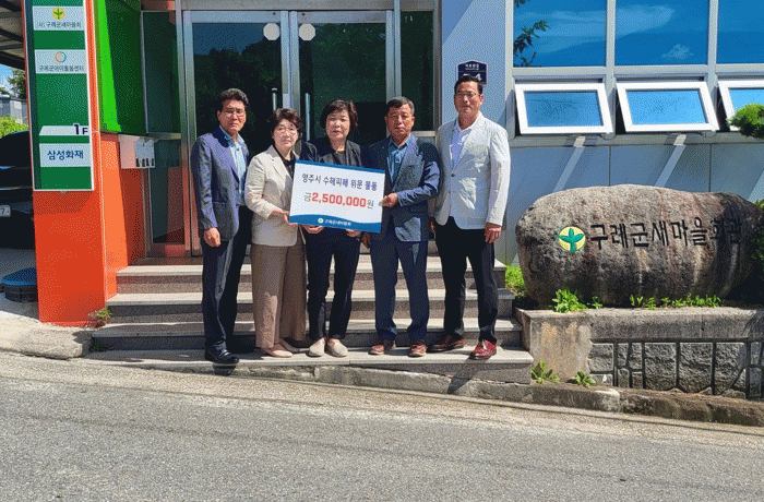 ±¸·Ê±º »õ¸¶À»È¸¿Í ±¸·Ê±º û³â»õ¸¶À»¿¬ÇÕȸ´Â ¹«´õ¿î ³¯¾¾¿¡µµ ¼öÇØ º¹±¸¸¦ À§ÇØ °í»ýÇϽô Áö¿ªÁֹΰú ÀÚ¿øºÀ»çÀÚ¿¡°Ô À§·Î¿Í ÀÀ¿øÀÇ ¸¶À½À» ´ã¾Æ »ý¼ö 145¹Ú½º¿Í À̿ À½·á¼ö 57¹Ú½º(250¸¸ ¿ø »ó´ç)¸¦ Àü´ÞÇß´Ù.