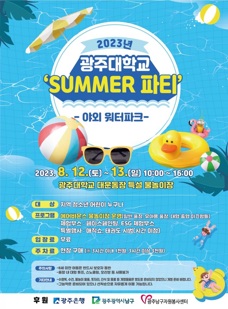 [ÅåÅå´º½º]±¤ÁÖ´ëÇб³(ÃÑÀå ±èµ¿Áø)°¡ Æø¿°¿¡ ÁöÄ£ Áö¿ª û¼Ò³â°ú ¾î¸°À̵鿡°Ô ÇູÇÑ ¿©¸§³¯ÀÇ Ãß¾ïÀ» ¼±»çÇÒ ¡®2023 SUMMER ÆÄƼ¡¯ ¾ß¿Ü ¿öÅÍÆÄÅ© Çà»ç¸¦ ¸¶·ÃÇß´Ù.