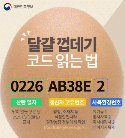 ½ÃÁß¿¡ À¯ÅëµÇ´Â °è¶õÀÇ ³°¢(²®µ¥±â)¿¡´Â »çÀ°È¯°æ, ³ó°¡Á¤º¸, »ê¶õÀÏÀÚ µîÀ» È®ÀÎÇÒ ¼ö ÀÖ´Â ¼ýÀÚ Ç¥±â°¡ µÇ¾î ÀÖ´Ù. ¿¹¸¦ µé¾î ¡®0226 AB38E2¡¯¶ó°í Ç¥±âµÇ¾î ÀÖ´Ù¸é, ¡®AB38E¡¯·Î ºÐ·ùµÈ ³ó°¡¿¡¼ ¹æ»ç»çÀ°À» ÅëÇØ 2¿ù 26ÀÏ »ý»êÇÑ(»ê¶õÇÑ) °è¶õÀÌ´Ù.