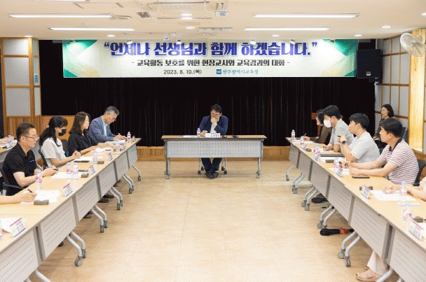 ÀÌÁ¤¼± ±³À°°¨Àº ¡°¸Å ÁÖ¸» ¼¿ï ±¤È¹®¿¡¼ ±³»çµéÀÌ ¿ÜÄ¡´Â ÀýÀýÇÑ ¿ÜħÀ» º¸°í ¾ÈŸ±î¿ò°ú Ã¥ÀÓ°¨À» µ¿½Ã¿¡ ´À²¸¿Ô´Ù¡±¸ç ¡°¿À´Ã °£´ãȸ¿¡¼ ´Ù½Ã Çѹø ±³»çµéÀÇ °íÃæ°ú ¾î·Á¿ò¿¡ ±íÀÌ °ø°¨ÇÏ°Ô µÆ´Ù. ±³»çµéÀÇ Á¤´çÇÑ ±³À°È°µ¿ º¸È£¸¦ À§ÇØ Á» ´õ ½ÇÈ¿¼º ÀÖ´Â ±³±Çº¸È£ ´ëÃ¥ÀÌ ¼ö¸³µÉ ¼ö ÀÖµµ·Ï ³ë·ÂÇϰڴ١±°í ¾à¼ÓÇß´Ù.