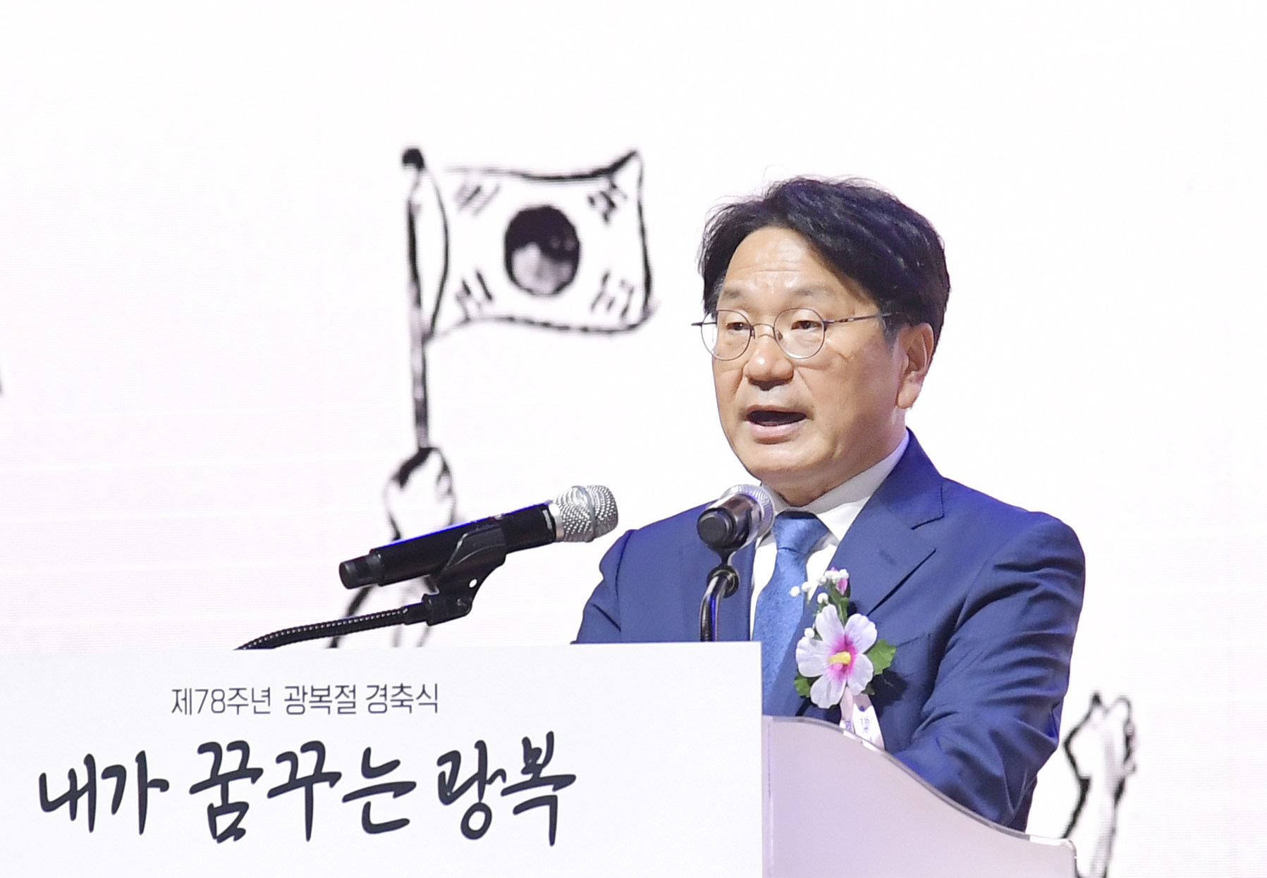 ° ½ÃÀåÀº À̳¯ ½Ãû ´ëȸÀǽǿ¡¼ ¿¸° Á¦78Áֳ⠱¤º¹Àý °æÃà½Ä¿¡ Âü¼®ÇØ ¡®³»°¡ ²Þ²Ù´Â ±¤º¹¡¯À» ÁÖÁ¦·Î °æÃà»ç¸¦ Çϰí, ¿©ÀüÈ÷ °¢ÀÚÀÇ ¡®±¤º¹¡¯À» ¿Ï¼ºÇϰíÀÚ ¾Ö¾²´Â ÀÏÁ¦°Á¦µ¿¿øÇÇÇØÀÚ¿Í ¼ÈÆÀ» ¹ÞÁö ¸øÇÑ µ¶¸³À¯°øÀÚ µîÀ» Á¶¸íÇß´Ù.
