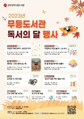 ¹«µîµµ¼°üÀº ¡ã¡®¾î¸¥ÀÇ ¾îÈַ¡¯ ÀúÀÚ À¯¼±°æ ÀÛ°¡ °¿¬ ¡ã¡®¸¶À½¹ö½º¡¯ ±èÀ¯ ÀÛ°¡¿ÍÀÇ ¸¸³² ¡ã¾î¸°ÀÌ Æé¾ÆÆ® : ´Ù½Ã ž´Â Ã¥ ¡ãÇÑ ¶¡ ÇÑ ¶¡ ºÏÄ¿¹ö ¸¸µé±â ¡ãµµ¼°ü ¼Ó »çÁø ¸ÀÁý µîÀ» ÁøÇàÇÑ´Ù.