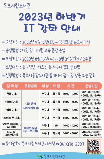 ÇϹݱâ IT °Á´ ¡ãÇÑ±Û ÇÁ·Î±×·¥ ±âÃÊ ¡ã¿¢¼¿ ÇÁ·Î±×·¥ ±âÃÊ ¡ãÄÄÇ»ÅÍ ±âÃÊ ¡ã½º¸¶Æ® Æù ±âÃÊ(ÀÌ»ó ´ë¸é 4°³ °ÁÂ) ¡ãSNS¿Í ¸ÞŸ¹ö½º, A.I. üÇè ¡ã³ªµµ 1ÀÎ Å©¸®¿¡ÀÌÅÍ(ÀÌ»ó ºñ´ë¸é 2°³ °ÁÂ) µî ÃÑ 6°³ °Á°¡ °³¼³µÈ´Ù.