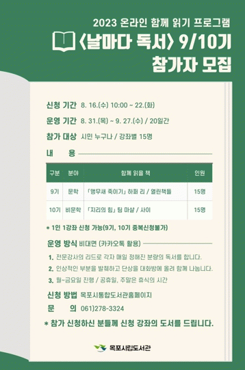 '³¯¸¶´Ù µ¶¼'´Â 2021³âºÎÅÍ ¿ì¸® Áö¿ª µ¶¼ ºÐÀ§±â¿¡ »õ·Î¿î º¯È¸¦ ÁÖ°íÀÚ ½ÃÀÛµÈ ¿Â¶óÀÎ ÇÔ²² Àбâ ÇÁ·Î±×·¥À¸·Î ±×µ¿¾È 120¸íÀÇ ½Ã¹ÎµéÀÌ Âü¿©ÇØ ´Ù¾çÇÑ ºÐ¾ßÀÇ 8±ÇÀÇ µµ¼¸¦ ÇÔ²² ¿Ïµ¶Çß´Ù.