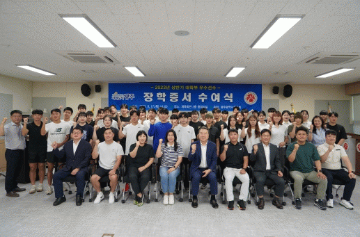 Áö³ 17ÀÏ ¡®2023³â »ó¹Ý±â ´ëÇкΠ¿ì¼ö¼±¼ö ÀåÇÐÁõ¼ ¼ö¿©½Ä¡¯¿¡´Â ´ëȸÃâÀü ÁßÀÎ ¼±¼ö¿Í ±¹°¡´ëÇ¥·Î ¼±¼öÃÌ¿¡ ÀÔÃÌÇÏ¿© ÈÆ·Ã ÁßÀÎ ¼±¼ö¸¦ Á¦¿ÜÇϰí 50¿©¸íÀÇ ¼±¼ö¿Í ÁöµµÀÚ°¡ Âü¼®Çß´Ù.