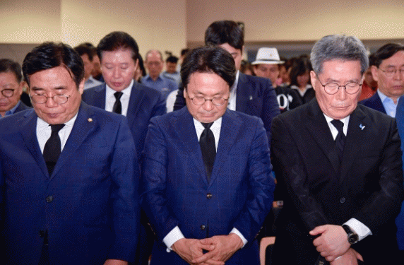 ° ½ÃÀåÀº Ã߸ð»ç¿¡¼ ±è´ëÁß ´ëÅë·ÉÀÇ ¡®´ë¾È ÀÖ´Â ºñÆÇ¡¯, ¡®ÅëÇÕÀû ±¹Á¤¿î¿µÀ» ÅëÇÑ ÁøÁ¤ÇÑ Ã¥ÀÓÁ¤Ä¡ ±¸Çö¡¯, ¡®¿ë¼¿Í ÈÇÕÀÇ Á¤Ä¡¡¯, ¡®¹Ý´ëÆí¸¶Àú ²¸¾ÈÀº ¿ìÁ¤ÀÇ Á¤Ä¡ ½ÇÇö¡¯ µî¿¡ ´ëÇÑ Á¸°æÀ» Ç¥Çϰí, ¡°±è´ëÁß ´ëÅë·ÉÀÇ ¶æÀ» À̾°Ú´Ù¡±°í °Á¶Çß´Ù.