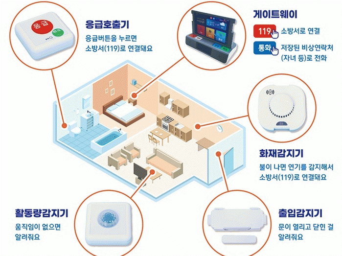 ÀÀ±ÞÈ£Ãâ±â, °ÔÀÌÆ®¿þÀÌ, ÈÀ硤Ȱµ¿·®¡¤ÃâÀÔ °¨Áö±â·Î ±¸¼ºµÈ Àåºñ´Â, °¡Á¤¿¡ ÈÀç°¡ ¹ß»ýÇϸé 119¿¡ ÀÚµ¿ ½Å°íÇϵµ·Ï ¼³°èµÆ´Ù.