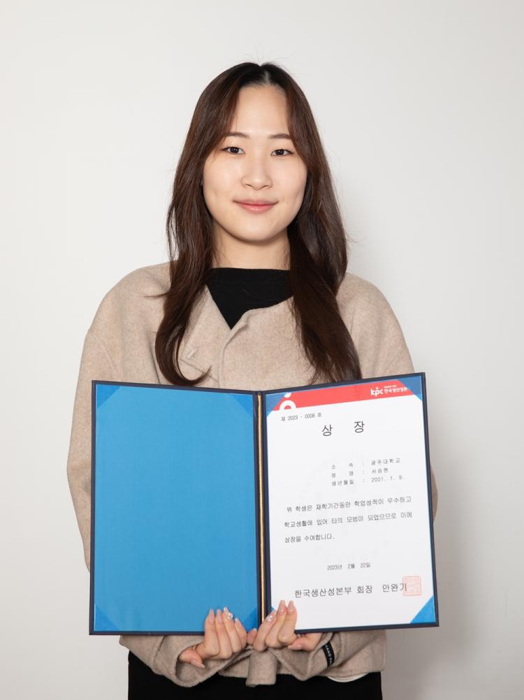 ¼½ÂÇö ÇлýÀº Çѱ¹»ý»ê¼ºº»ºÎ ÀÎÁõ ERP¸¶½ºÅÍ ÀÚ°ÝÀ» º¸À¯Çϰí ÀÖÀ¸¸ç, ¿Ã ÃÊ Àü±¹ ERPÁ¤º¸°ü¸®»ç Çо÷¼ºÃëµµ ¼ºÀû ¿ì¼öÀÚ·Î ¼±Á¤µÇ¾î Çѱ¹»ý»ê¼ºº»ºÎ ȸÀå»óÀ» ¹Þ±âµµ ÇÏ¿´´Ù.
