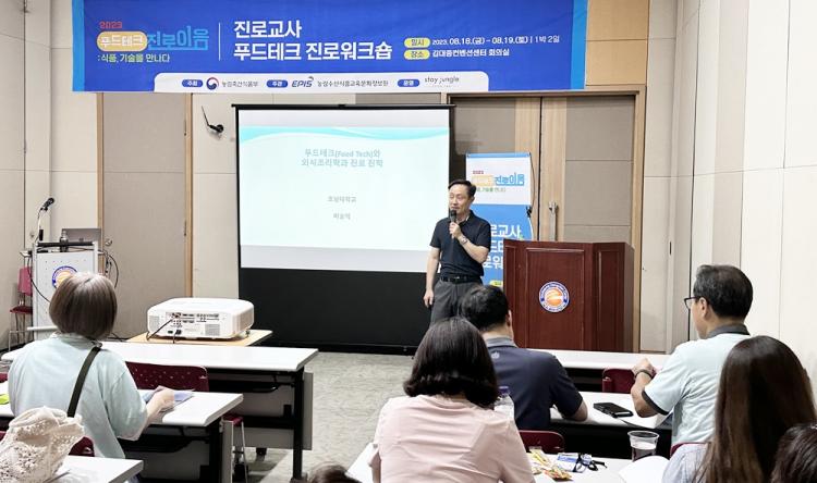 [ÅåÅå´º½º]È£³²´ëÇб³ ¿Ü½ÄÁ¶¸®Çаú À̽ÂÀÍ ±³¼ö´Â 8¿ù 18ÀÏ ±è´ëÁßÄÁº¥¼Ç¼¾ÅÍ¿¡¼ ÁøÇàµÈ ¡®2023 ǪµåÅ×Å© Áø·ÎÀÌÀ½ Áø·Î¡¤ÁøÇÐ ¿öÅ©¼ó¡¯¿¡¼ Àü±¹ Áß¡¤°í±³ Áø·Î ±³»çµéÀ» ´ë»óÀ¸·Î ¡®ÇªµåÅ×Å©¿Í ¿Ü½ÄÁ¶¸®Çаú Áø·Î¡¤ÁøÇС¯À» ÁÖÁ¦·Î Ư°À» °¡Á³´Ù.