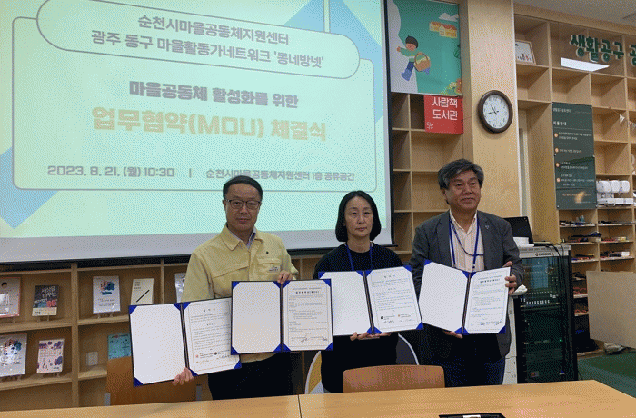 ¹Úº´µÎ ¼øÃµ½Ã¸¶À»°øµ¿Ã¼Áö¿ø¼¾ÅÍÀåÀº ¡°À̹ø Çù¾àÀº Áö¼Ó °¡´ÉÇÑ ¸¶À»°øµ¿Ã¼ ±¸ÃàÀ» À§ÇØ 3°³ ±â°üÀÌ ÇÔ²² Çù·ÂÇϴ ù°ÉÀ½¡±À̶ó¸ç, ¡°Áö¿ªÀÇ °æ°è¸¦ ³Ñ¾î ÀÎÀû ÀÚ¿øÀ» Áö¿øÇÏ°í °øÀ¯ÇÏ¿© °øµ¿Ã¼ Ȱµ¿ÀÌ Áö¿ª»çȸ¸¦ À§ÇÑ ½Ã³ÊÁö È¿°ú¸¦ ³¾ ¼ö ÀÖµµ·Ï ÇÔ²² ³ë·ÂÇÏÀÚ¡±¶ó°í ¸»Çß´Ù.