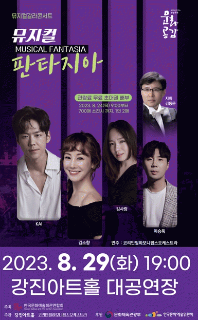 Çѱ¹¹®È¿¹¼úȸ°ü¿¬ÇÕȸ°¡ ÁÖÃÖÇÏ°í ¹®ÈüÀ°°ü±¤ºÎ Çѱ¹¹®È¿¹¼úÀ§¿øÈ¸°¡ ÈÄ¿øÇÏ´Â ÀÌ °ø¿¬Àº °Áø±ºÀÌ ¹æ¹æ°î°î ¹®È°ø°¨ ÇÁ·Î±×·¥ °ø¸ð»ç¾÷¿¡ ¼±Á¤µÅ °ü¶÷·á´Â ¹«·á´Ù.