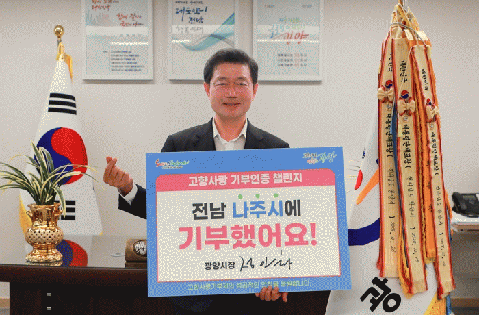 ¶ÇÇÑ Á¤ ½ÃÀåÀº Çõ½Åµµ½ÃÀÎ Àü³² ³ªÁÖ½ÃÀÇ °íÇâ»ç¶û±âºÎÁ¦ Ȱ¼ºÈ¸¦ ÀÀ¿øÇÏ¸ç ±âºÎ±ÝÀ» ±âŹÇÑ ÈÄ À±º´Å ³ªÁÖ½ÃÀåÀ» ´ÙÀ½ 縰Áö ÁÖÀÚ·Î Áö¸íÇß´Ù.