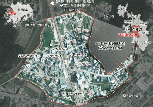 ¸ñÆ÷´ëÇб³ ÈĹ® »ó±Ç°ú ±¹µµ 1È£¼± ¸ÂÀºÆí(¼Ãø) ¿ø¸¶À»À» Æ÷ÇÔÇÑ Ã»°è¸é µµ¸²¸® ¼ÒÀçÁö(µµ½ÃÁö¿ª) ÀÏ¿ø 227,900§³¸¦ Ȱ¼ºÈÁö¿ªÀ¸·Î ÁöÁ¤ÇÏ°í µµ½ÃÀç»ý»ç¾÷À» ÅëÇÑ ÆÄ±Þ È¿°ú ¹× Ä·ÆÛ½º ÀÔÁö¿¡ µû¸¥ ¿¬°è ¹æ¾È µîÀ» ¸¶·ÃÇϱâ À§ÇÑ ³ë·ÂÀ» Áö¼ÓÇϰí ÀÖ´Ù.