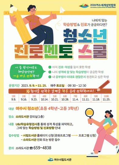 ÇÁ·Î±×·¥Àº ÃʵîÇб³ 4ÇгâºÎÅÍ °íµîÇб³ 3Çгâ û¼Ò³âÀ» ´ë»óÀ¸·Î ¿À´Â 9¿ù 9ÀϺÎÅÍ 11¿ù 25ÀϱîÁö ¸ÅÁÖ Åä¿äÀÏ 9½Ã 30ºÐ~12½Ã 30ºÐ, ¼Ò¶óµµ¼°ü °Àǽǿ¡¼ ÁøÇàµÈ´Ù.