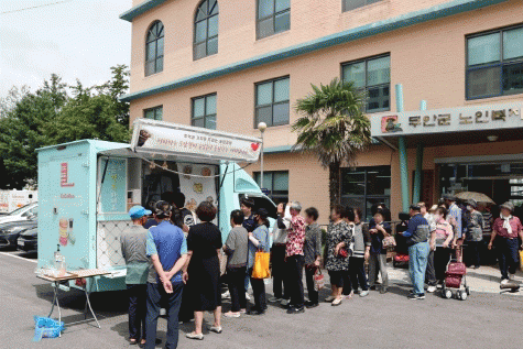 °æ·Î½Ä´ç¿¡¼ ½Ä»ç¸¦ ¸¶Ä¡½Å ¾î¸£½Å 200¿© ºÐ²² µµ´ã°¥ºñ ´ëÇ¥¸¦ ºñ·ÔÇÑ Á÷¿ø 9¸íÀÌ Á÷Á¢ Ä¿ÇÇ¿Í ¾ÆÀ̽ºÆ¼ µî ½Ã¿øÇÑ À½·á¸¦ ³ª´²µå·È°í, ¾î¸£½Åµé²² Àá½Ã³ª¸¶ ¹«´õ¿î ¿©¸§À» ÀØÀ¸½Ç ¼ö ÀÖ´Â ½Ã°£À» Á¦°øÇØ Å« È£ÀÀÀ» ¾ò¾ú´Ù.