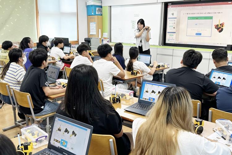 ¡®¹Ì·¡¸¦ ´Þ¸®´Â µðÁöÅÐÄ«¡¯¿¡ Âü¿©ÇÑ 4Çгâ ÀçÇлý 21¸íÀº µðÁöÅÐÄ« ŰƮ¸¦ Ȱ¿ëÇÏ¿© ¸ð¹ÙÀÏ ÄÚµù(ºí·ÏÄÚµù) »ç¿ë¹ý ÀÍÈ÷±â, ¼¾¼ÀÇ »ç¿ë¹ýÀ» ÀÍÈ÷¸ç ¼Ò¸®¼¾¼·Î ¸á·Îµð ÄÚµù ÇÁ·Î±×·¡¹Ö ½Ç½À, IR¼¾¼ ÃÊÀ½ÆÄ ¼¾¼ ÄÚµù ÇÁ·Î±×·¡¹ÖÀ» ÀÍÇô ÄÚµù ¼ø¼µµ¿Í ¾Ë°í¸®Áò °úÁ¤À» ÀÌÇØÇϰí, ÇÁ·Î±×·¡¹Ö °úÁ¤À» µðÁöÅÐÄ«¸¦ ÅëÇØ üÇèÇϸç ÀÍÈú ¼ö ÀÖ´Â ½Ã°£À» °¡Á³´Ù.