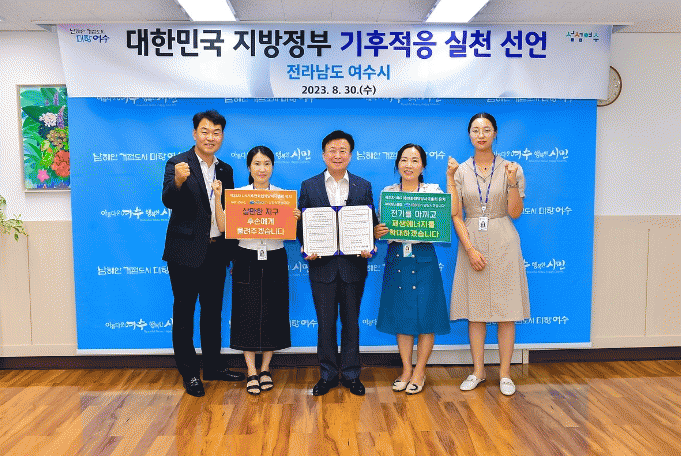 Á¤±â¸í ¿©¼ö½ÃÀåÀº ¡°¿©¼ö½Ã´Â 2050 ź¼ÒÁ߸³ ¼±¾ðÀ» ÅëÇØ ½Ã Á¤ºÎÀÇ È®°íÇÑ ½ÇõÀÇÁö¸¦ Ç¥¸íÇÏ¸ç ±âÈÄÀûÀÀ ½Çõ¿¡ ¾ÕÀå¼°í ÀÖ´Ù¡±¸ç ¡°Áö¼Ó°¡´ÉÇÑ ±âÈĺ¯È ´ëÀÀÀ» ¼±µµÇÏ´Â µµ½Ã·Î¼ ±âÈÄÀûÀÀÀÇ Çʿ伺À» Àû±Ø È«º¸ÇÏ°í ½Ã¹Î°ú ÇÔ²²ÇÏ´Â ÀûÀÀÁ¤Ã¥ ¸¶·Ã¿¡ Èû½á COP33µµ ¹Ýµå½Ã À¯Ä¡Çϰڴ١±°í ¹àÇû´Ù.