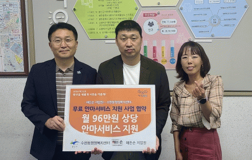 À̳¯ Çù¾à¿¡ µû¶ó ÇØµç¼Õ Áö¾Ð¿øÀº ¼ö¿Ïµ¿ °ü³» °ÅÁÖÇϰí ÀÖ´Â ¼ö±Þ, Â÷»óÀ§ ´ë»ó ¿©¼º ¾î¸£½Å 8¸í¿¡°Ô ¿ù 2ȸ ÃÑ 96¸¸ ¿ø »ó´çÀÇ ¾È¸¶¼ºñ½º¸¦ Á¦°øÇÒ ¿¹Á¤ÀÌ´Ù.