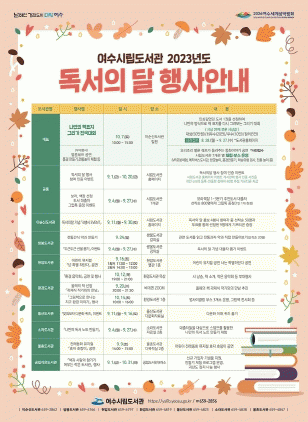 °ø¿¬¡¤°¿¬·Î´Â À̼ø½Åµµ¼°ü ¡®³ª¸¸ÀÇ Ã¥Ç¥Áö ±×¸®±â ´ëȸ¡¯ ¹× ¡®µ¶¼ÀÇ ´Þ ±â³ä 4Çà½Ã À̺¥Æ®¡¯, ½ÖºÀµµ¼°ü ¡®ÀüÅë°£½Ä ¾à°ú ¸¸µé±â¡¯, µ¹»êµµ¼°ü ¡®¸ÂÃ纸ÀÚ ´Ù¹®È ÄûÁ, ¼Ò¶óµµ¼°ü ¡®³ª¸¸ÀÇ µ¶¼ ³ëÆ® ¸¸µé±â¡¯, °ø¸³ ÀÛÀºµµ¼°ü ¡®Ã¥°ú »ç¶÷ÀÇ Çâ±â°¡ ¸Ó¹«´Â ÀÛÀºµµ¼°ü¡¯ µîÀÌ´Ù.