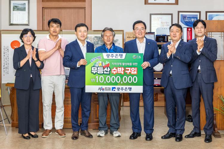 [ÅåÅå´º½º] ±¤ÁÖÀºÇà(ÀºÇàÀå °íº´ÀÏ)Àº 31ÀÏ, ±¤ÁÖ ºÏ±¸Ã»¿¡¼ °íº´ÀÏ ±¤ÁÖÀºÇàÀå°ú ¹®ÀÎ ±¤ÁÖ±¤¿ª½Ã ºÏ±¸Ã»Àå, ¹«µî»ê ¼ö¹Ú Àç¹è³ó°¡µéÀÌ Âü¼®ÇÑ °¡¿îµ¥, ¿ì¸® Áö¿ªÀÇ ¸í¹°ÀÎ ¹«µî»ê ¼ö¹ÚÀ» ±¸ÀÔÇϸç Áö¿ª°æÁ¦ Ȱ¼ºÈ¿Í »ó»ý¹ßÀü¿¡ ¾ÕÀå¼³ °ÍÀ̶ó°í ¹àÇû´Ù.