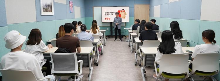 Âü¿© À¯ÇлýµéÀº Çѱ¹¿ìÆí»ç¾÷ÁøÈï¿ø ÀüÀÚ»ó°Å·¡Áö¿ø¼¾ÅÍ¿¡ ´ëÇÑ ¼³¸íÀ» µè°í, MD, PD, ¼îÈ£½ºÆ®, Ǫµå½ºÅ¸Àϸ®½ºÆ® µî ºÐ¾ßº° ÇöÁ÷ÀڷκÎÅÍ Á÷¹« Ư¼º°ú Ãë¾÷Çʿ俪·® µî °ü·Ã Á¤º¸¸¦ ½ÀµæÇß´Ù.