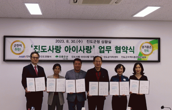 À̳¯ ¾÷¹«Çù¾à½Ä¿¡´Â Áøµµ°æÂû¼ÀåÀ» ºñ·ÔÇÏ¿© Áøµµ±º¼ö, Áøµµ°¡Á·¼¾ÅÍÀå, ÁøµµÁö¿ª¾Æµ¿¼¾ÅÍ ¿¬ÇÕȸÀå, ÃÊ·Ï¿ì»ê ¾î¸°ÀÌÀç´Ü Àü³²Áö¿ªº»ºÎÀå, Áøµµ ¾ÆÀÌ»ç¶û À§¿øÈ¸ À§¿øÀå µîÀÌ Âü¼®ÇÏ¿© º¹Áö »ç°¢Áö´ë À§±â ¾Æµ¿ Àû±Ø ¹ß±¼ ¹× Áö¿ø¿¡ ´ëÇØ Àû±Ø Çù·ÂÇϱâ·Î Çß´Ù.
