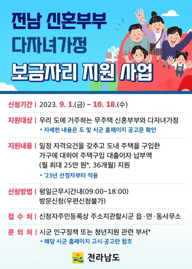½ÅÈ¥ºÎºÎ¡¤´ÙÀڳడÁ¤ º¸±ÝÀÚ¸® Áö¿ø»ç¾÷Àº µµ³»¿¡ °ÅÁÖÇÏ´Â ¹«ÁÖÅà ½ÅÈ¥ºÎºÎ¿Í 2ÀÚ³à ÀÌ»óÀÎ ´ÙÀڳడÁ¤À» ´ë»óÀ¸·Î ÁÖÅà ±¸ÀÔ ´ëÃâÀÌÀÚ ÀϺθ¦ Áö¿øÇÏ´Â »ç¾÷ÀÌ´Ù. ¿ÃÇØ ¼±Á¤ÀÚºÎÅÍ ¿ù ÃÖ´ë 25¸¸ ¿ø±îÁö 36°³¿ù°£ Áö¿ø¹ÞÀ» ¼ö ÀÖ´Ù.