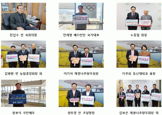 ¶ÇÇÑ ³ªÁֽÿ¡ ´ëÇÑ °íÇâ»ç¶û ±âºÎ´Â Àü±¹ °¢ÁöÀÇ ÃâÇâ Àλç, ³ªÁֽø¦ ÀÀ¿øÇÏ´Â °³ÀÎ ±âºÎÀÚ, ´ëÇб³, ³óÇù, °ø°ø±â°ü µî Áö¿ª °£ »óÈ£±³Â÷ ±âºÎ µîÀ¸·Î ÁøÇàµÇ°í ÀÖ´Ù.