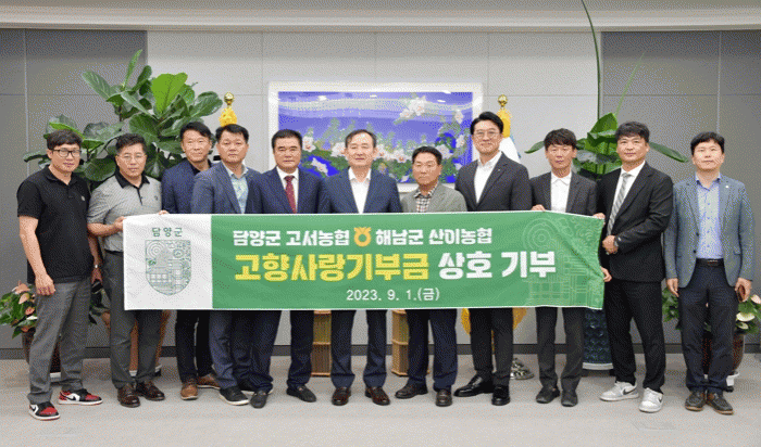 À̳¯ ±âŹ½Ä¿¡¼´Â ´ã¾ç-ÇØ³²ÀÇ °íÇâ»ç¶û±âºÎÁ¦ Ȱ¼ºÈ¸¦ À§ÇÑ ³ë·Â°ú ³ó¾÷ À¯Åë ±â¹Ý °È ¹× ÆÇ·Î È®´ë¸¦ À§ÇÑ »óÈ£ Çù·ÂÀ» ¾à¼ÓÇß´Ù.