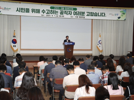 Á¤ÀÎÈ ±¤¾ç½ÃÀåÀº ¡°½Ã¹ÎµéÀ» À§ÇØ Ç×»ó ³ë·ÂÇÏ°í ¸ÃÀº¹Ù ¾÷¹«¿¡ ¼º½ÇÈ÷ ÀÓÇØ ÁØ °øÁ÷ÀÚ ¿©·¯ºÐµé²² °¨»çµå¸°´Ù¡±°í °í¸¶¿òÀ» ÀüÇϸç 9¿ù Á¤·Ê Á¶È¸¸¦ ¸¶¹«¸®Çß´Ù.