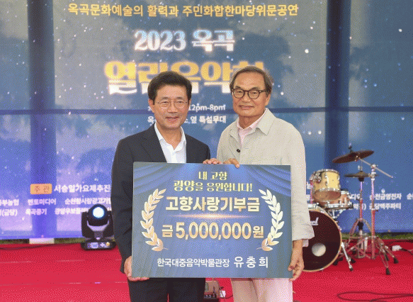 Çѱ¹´ëÁßÀ½¾Ç¹Ú¹°°üÀå°ú ¢ßÇѱ¹Äھƿ£Áö´Ï¾î¸µ ´ëÇ¥¸¦ ¿ªÀÓÇϰí ÀÖ´Â À¯ÃæÈñ Çâ¿ì´Â 2023³â ¿Á°î ¿¸°À½¾Çȸ °³ÃÖ¸¦ ÃàÇÏÇϱâ À§ÇØ °íÇâÀ» ¹æ¹®ÇØ °íÇâ»ç¶û ¸¶À½À» Àü´ÞÇÏ°í ³» °íÇâ ±¤¾çÀ» ÀÀ¿øÇϰíÀÚ °íÇâ»ç¶û±âºÎÁ¦¿¡ µ¿ÂüÇØ 1ÀÎ ÃÖ°í ±Ý¾×ÀÎ 5¹é¸¸ ¿øÀÇ ±âºÎ±ÝÀ» Àü´ÞÇß´Ù.