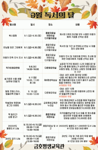 9¿ù µ¶¼ÀÇ ´Þ Çà»ç ¹× µ¶¼ ÇÁ·Î±×·¥¿¡ ´ëÇÑ Á¤º¸´Â ±ÝÈ£Æò»ý±³À°°ü ȨÆäÀÌÁö¿¡ °Ô½ÃµÇ¾î ÀÖ´Ù.