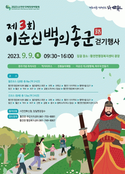 À̹ø Çà»ç´Â À̼ø½ÅÀÌ ¹éÀÇÁ¾±ºÇÏ¸ç °É¾ú´ø ȲÀü¸é ±¸°£À» µû¶ó °ÉÀ¸¸é¼ À̼ø½Å À屺ÀÇ ³ª¶ó »ç¶û Á¤½ÅÀ» ¹è¿ì°í, °¡Á·°ú ÇÔ²² ¼ÒÅëÇÏ¸ç ½É½ÅÀÇ °Ç°±îÁö ì±æ ¼ö ÀÖ´Â Çà»ç´Ù.