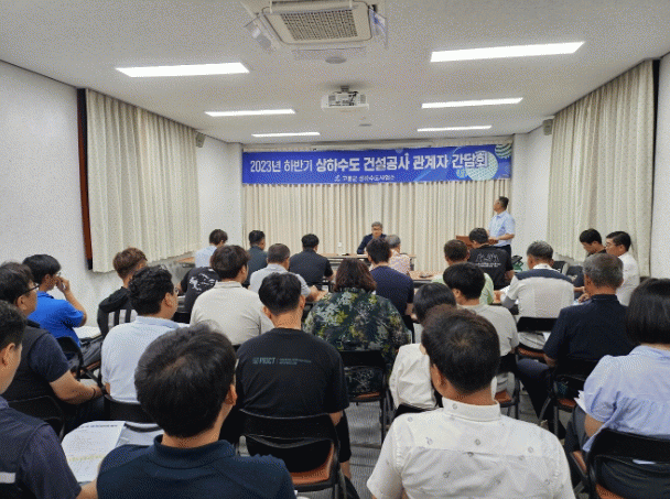 »óÇϼöµµ»ç¾÷¼Ò ȸÀǽǿ¡¼ ¿¸° °øÁ¤º¸°íȸ¿¡´Â »óÇϼöµµ»ç¾÷¼Ò °ü°èÀÚ 7¸í°ú °ø»ç ÇöÀå´ë¸®ÀÎ, ½Ã°ø»ç ´ëÇ¥ÀÚ, °¨¸®´Ü µî 50¿© ¸íÀÌ Âü¼®Çß´Ù.