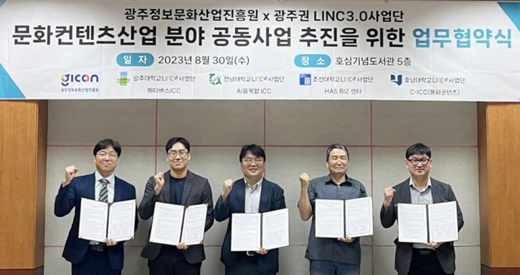 ¶Ç ¹®ÈÄÜÅÙÃ÷»ê¾÷ ºÐ¾ß °øµ¿ »ç¾÷ ÃßÁøÀ» À§ÇÑ Çù¾à½Ä¿¡´Â ±¤ÁÖ´ëÇб³ LINC3.0»ç¾÷´Ü ¸ÞŸ¹ö½º ICC, ±¤ÁÖÁ¤º¸¹®È»ê¾÷ÁøÈï¿ø, Àü³²´ëÇб³ LINC3.0»ç¾÷´Ü AIÀ¶º¹ÇÕ ICC, Á¶¼±´ëÇб³ LINC3.0»ç¾÷´Ü HAS BIZ ¼¾ÅÍ, È£³²´ëÇб³ LINC3.0»ç¾÷´Ü C-ICC(¹®ÈÄÜÅÙÃ÷)°¡ Âü¿©Çß´Ù.