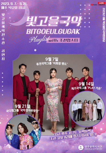¸¶Áö¸·À¸·Î 9¿ù 21ÀÏ ±¹µð¿¥(±¹¾Ç+EDM) ±×·ì ¡®±¹¾ÇÀüÀÚÀ¯¶û´Ü¡¯ÀÇ °ø¿¬ÀÌ ÁøÇàµÈ´Ù. À̹ø °ø¿¬¿¡¼´Â ½Å¸í ³ª´Â ¿ì¸® °¡¶ô¿¡ EDM ºñÆ®°¡ ´õÇØÁø Èï°Ü¿î À½¾Ç, ¸À±ò½º·¯¿î Àç´ã°ú ¿¬Èñ·Î ä¿öÁø Çö´ëÆÇ ¸¶´ç³îÀ̰¡ ÆîÃÄÁú ¿¹Á¤ÀÌ´Ù. ¸á·Ð±¹¾ÇÂ÷Æ® 1À§¸¦ Â÷ÁöÇÑ ¡®¿ËÇì¾ß¡¯, Çѱ¹ÄÜÅÙÃ÷ÁøÈï¿ø ´ëÁßÀ½¾Ç Áö¿ø»ç¾÷¿¡ ¼±Á¤µÈ ¡®¿äÁò¾ç¹Ý¡¯µî ´Ù¾çÇÑ Ã¢ÀÛ°îÀ» ¼±º¸ÀδÙ. ¾Æ¿ï·¯ °ü°´ À̺¥Æ® '½ºÆ®¸´ Å»Ãã ÆÄÀÌÅÍ'·Î ºÀ»êÅ»Ãã µîÀ» ¹è¿ì°í °ü°´°ú ÇÔ²² ¹èƲ Çü½ÄÀÇ Âü¿©Çü ¹«´ë·Î °ü¶÷°´µéÀÇ Àç¹Ì¸¦ ´õÇÒ ¿¹Á¤ÀÌ´Ù.