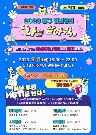 µ¿±¸ û³âÂü¿©À§¿øÈ¸¿¡¼ ±âȹ¡¤ÁÖÃÖÇÑ Ã»³âÃÑȸ ¡®³ª¸¦ ¾Ë¾ÆÁ࡯´Â MBTI(¼º°Ý À¯Çü°Ë»ç)¸¦ Á¢¸ñ½ÃÄÑ ½º½º·Î¸¦ Ç¥ÇöÇÏ°í ¼¼»ó°ú ¼ÒÅëÇÏ±æ ¹Ù¶ó´Â û³âµéÀÇ ¸¶À½À» ´ã¾Æ ¸¶·ÃµÆ´Ù.