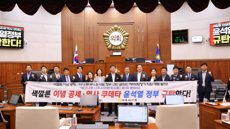 ³ªÁÖ½ÃÀÇȸ´Â °áÀǾÈÀ» ÅëÇØ ¡°À±¼®¿ Á¤ºÎ°¡ ³¯À» ¼¼¿î ÀÌ³ä °ø¼¼¸¦ ¾Õ¼¼¿ö ¿ª»ç µÚÁý±â, ¿ª»ç Äíµ¥Å¸¸¦ ÀÚÇàÇÏ¸ç ±¹·ÐÀ» ºÐ¿½Ã۰í ÀÖ´Ù¡±¶ó¸ç ¡°°ø»êÀüüÁÖÀÇ¡¯¶ó´Â ½ÅÁ¶¾î±îÁö ¸¸µé¾î³»¸ç ¡®À̳äÀüÀ¿¡ ¸ôµÎÇϰí ÀÖ´Â À±¼®¿ Á¤ºÎÀÇ ¹Ý¿ª»çÀû ÇàŰ¡ ÂüÀ¸·Î Åëź½º·´´Ù.¡±¶ó°í °ÇÏ°Ô ºñÆÇÇß´Ù.