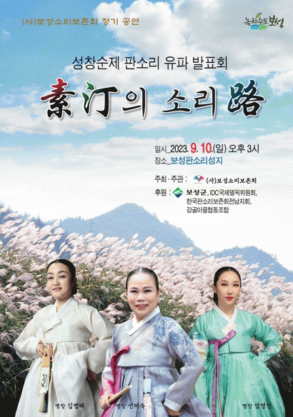 (»ç) º¸¼º¼Ò¸®º¸Á¸È¸´Â 2014³â ±¹¾Ç Àü¹®°¡¿Í µ¿È£Àεé·Î ±¸¼ºµÈ ´Üü·Î À̹ø °ø¿¬¿¡¼ °¢ Áö¿ª¿¡¼ Ȱµ¿Çϴ ͺ¼ºÃ¢¼ø ¼±»ýÀÇ Á¦ÀÚµéÀÌ ÆÇ¼Ò¸®, ³²µµ¹Î¿ä, µ¿ºÎ¹Î¿ä µîÀÇ ±¹¾ÇÀÇ Ç⿬À» ¼±º¸ÀÏ ¿¹Á¤ÀÌ´Ù.